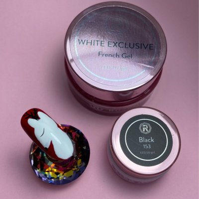 Zotrieme výpotok a nakreslime obrys srnčeka bielym gélom, použila som White exclusive french gel, následne po polymerizacii nakreslila čiernym gélom Black oko a nos